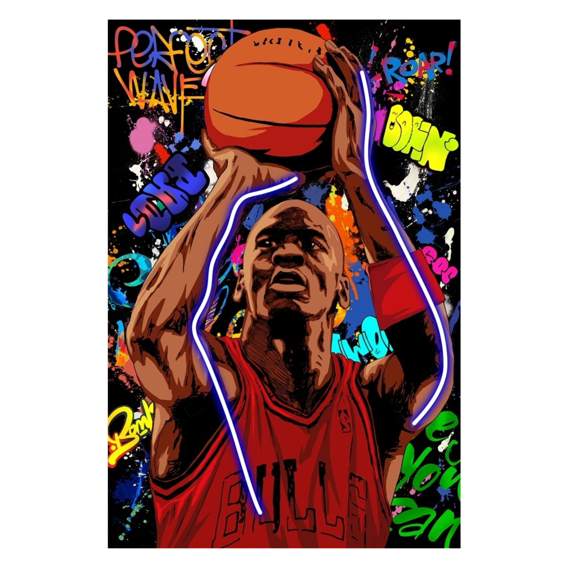 Quadro moderno con stampa artistica su tela, impreziosito da inserti a LED integrati che illuminano dettagli selezionati. Il design unisce arte visiva e tecnologia per creare un elemento d’arredo vivace e scenografico, perfetto per ambienti contemporanei come salotti, camere o uffici.