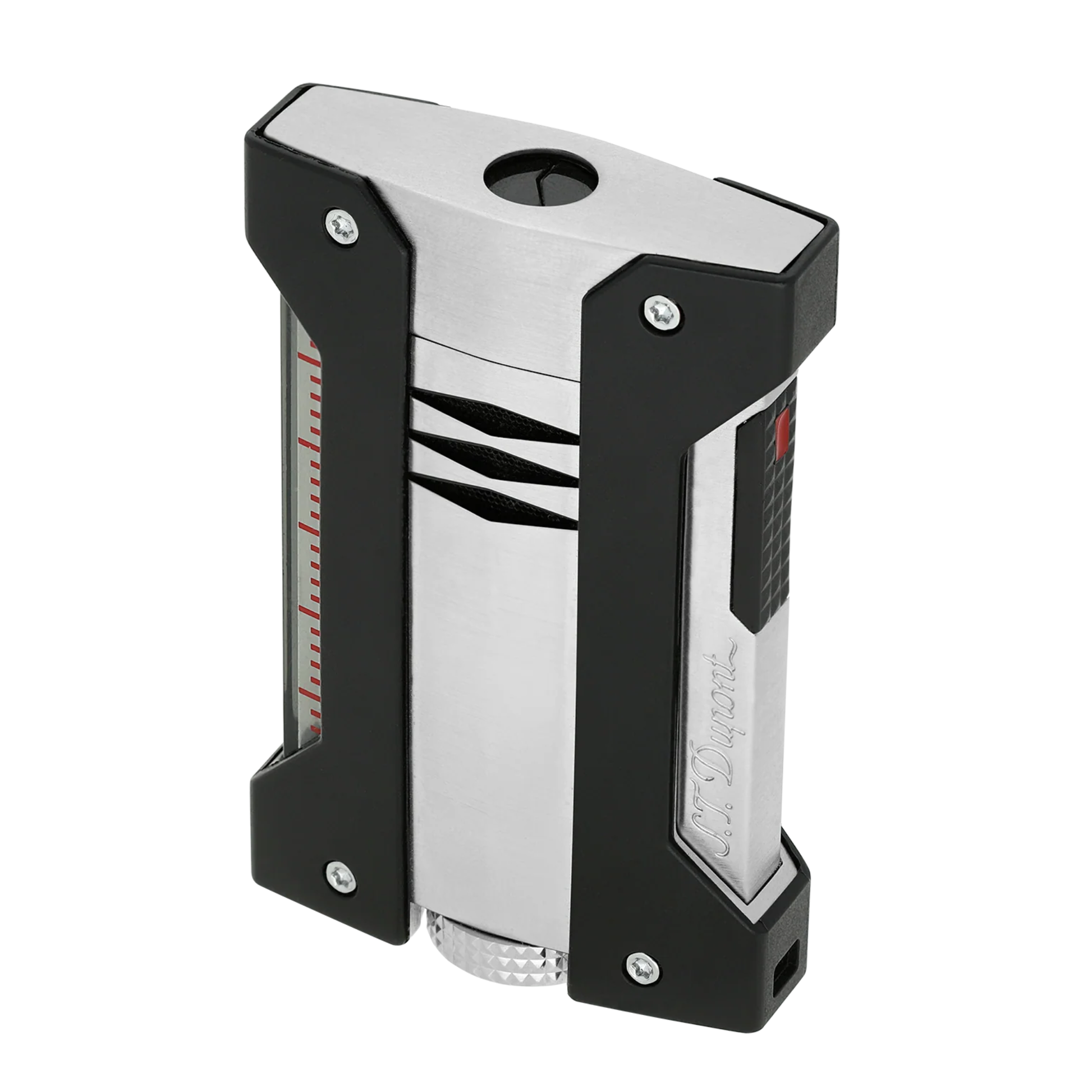 L’accendino S.T. Dupont Défi Extrême Grigio Spazzolato rappresenta la perfetta combinazione di design elegante e prestazioni elevate. Realizzato con un corpo in metallo iniettato e un guscio semi-rigido protettivo, offre resistenza e durata anche nelle condizioni più estreme. Il suo design moderno, impreziosito da dettagli satinati e dal caratteristico decoro a punta di diamante, garantisce una presa ergonomica e sicura.